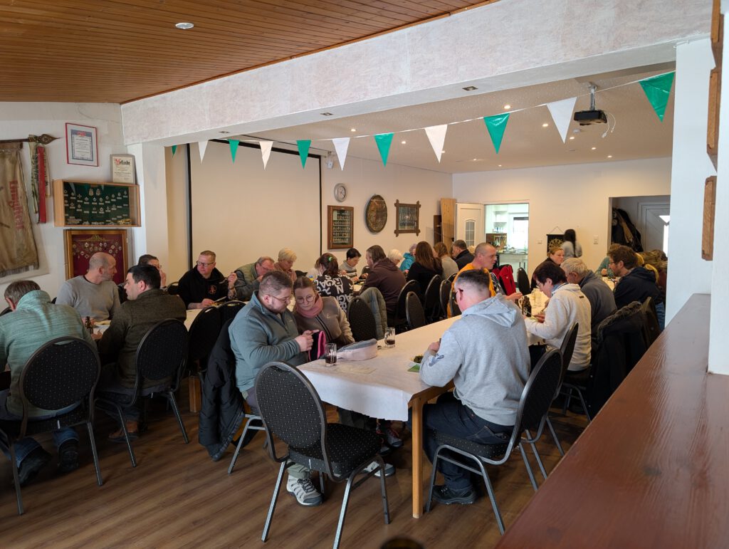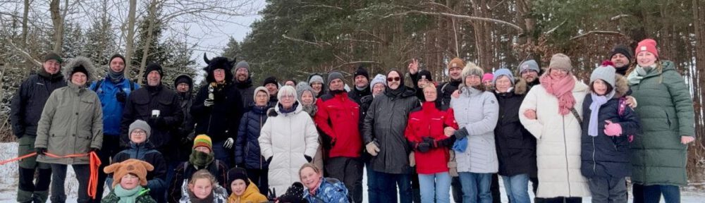 Am ersten Februarsonntag trafen sich mehr als 30 Wanderwillige zur Grußendorfer Grünkohlwanderung. Bei tiefem Schnee, -7 Grad und strammem Süd-Ost-Wind war der durch die Feldmark dieses Jahr recht anspruchsvoll. Zum Glück sorgte Sylke mit Ihrem Team an drei Stationen unterwegs für wärmende Getränke. Nach 2 1/2 – 3 Stunden auf den Beinen kehrten alle ins Schützenheim ein, und die Töpfe dampften bereits.